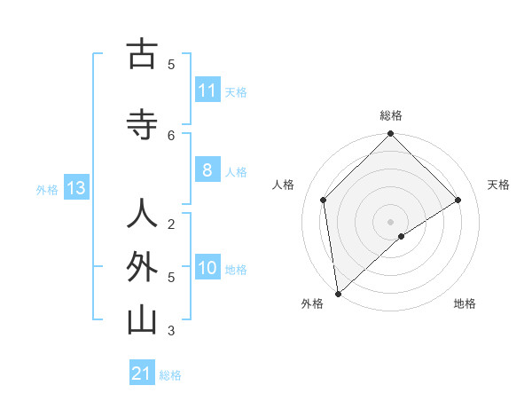 古寺 人外山さんの総格は21画の5点!