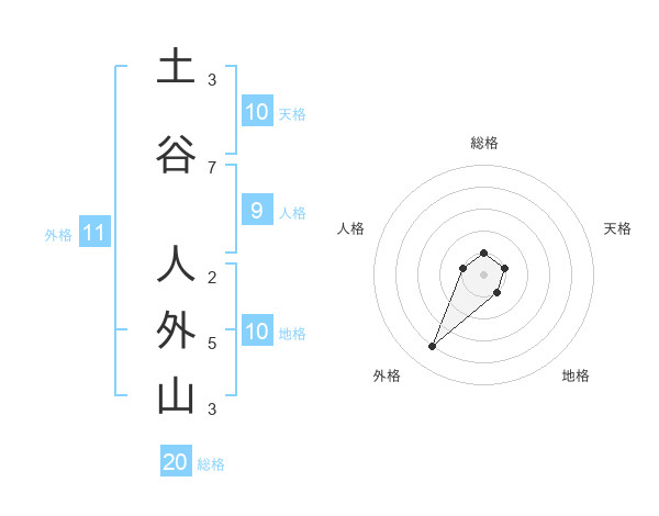 土谷 人外山さんの総格は20画の1点!