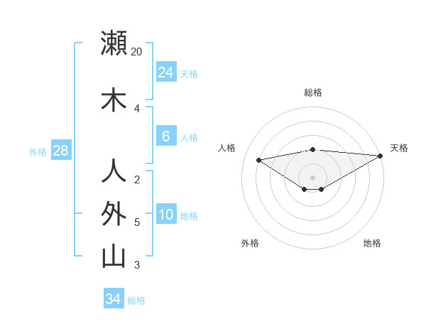瀬木 人外山さんの総格は34画の2点