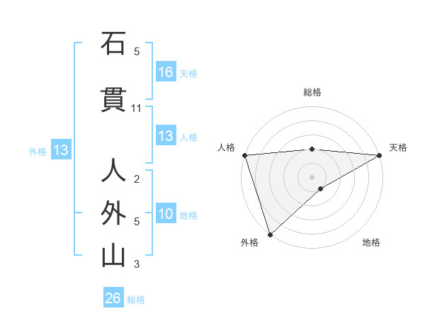 石貫 人外山さんの外格は13画の5点!