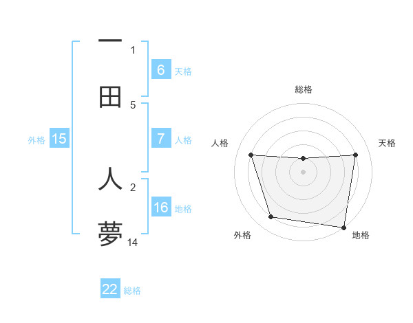 一田 人夢さんの総格は22画の1点!