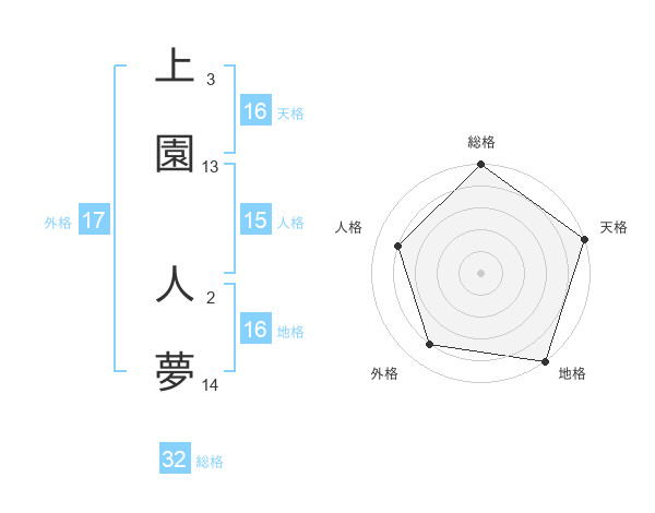 上園 人夢さんの総格は32画の5点!