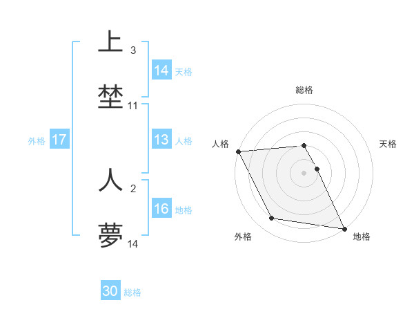 上埜 人夢さんの外格は17画の4点!