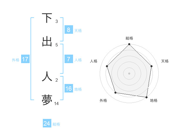 下出 人夢さんの外格は17画の4点!