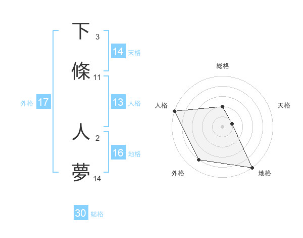 下條 人夢さんの総格は30画の2点!