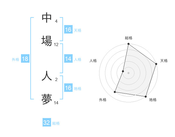 中場 人夢さんの外格は18画の4点!