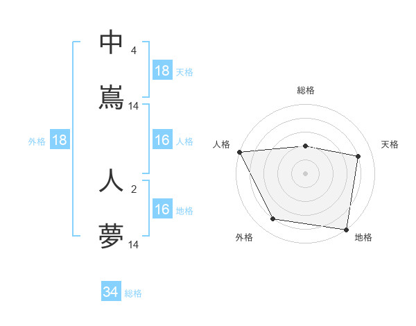 中嶌 人夢さんの天格は18画の4点!
