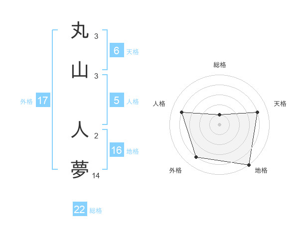 丸山 人夢さんを姓名の画数から五運を鑑定