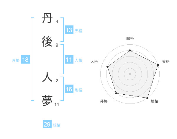 丹後 人夢さんを姓名の画数から五運を鑑定