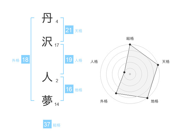 丹沢 人夢さんを姓名の画数から五運を鑑定