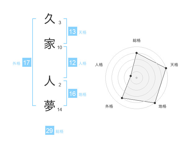 家系が持つ宿命的な運勢を表します。祖先から受け継いだ苗字ですので自分の力が及びません。家柄を象徴します。