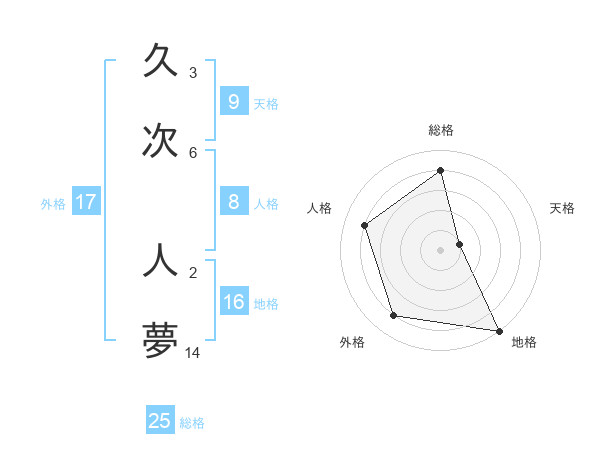 久次 人夢さんの総格は25画の4点!