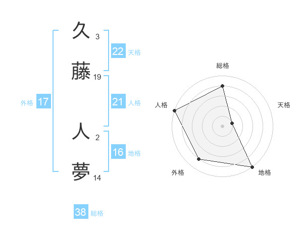 久藤 人夢さんの総格は38画の4点!