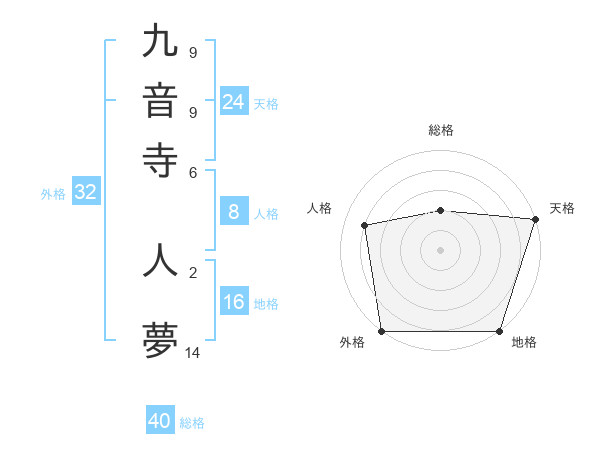 九音寺 人夢さんの総格は40画の2点!