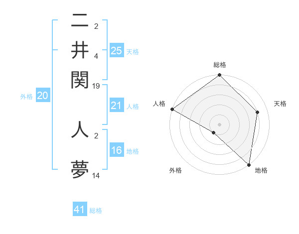 二井関 人夢さんを姓名の画数から五運を鑑定