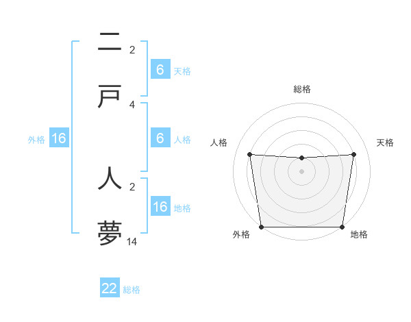 二戸 人夢さんを姓名の画数から五運を鑑定