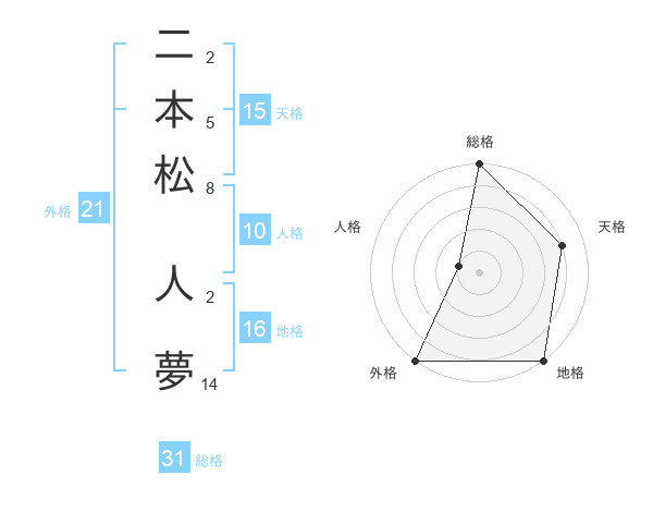 二本松 人夢さんを姓名の画数から五運を鑑定
