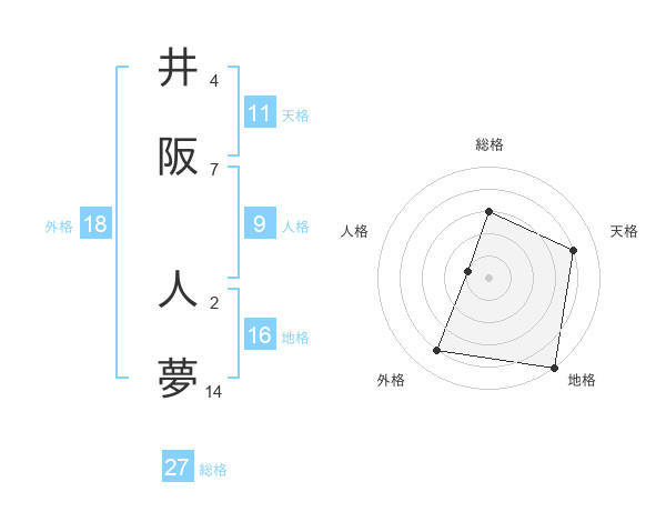 井阪 人夢さんを姓名の画数から五運を鑑定