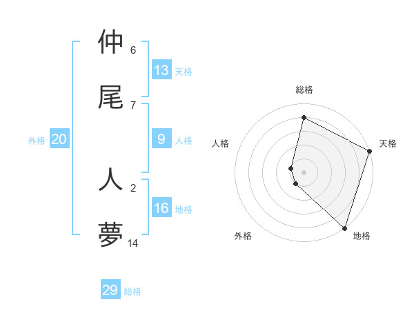 仲尾 人夢さんを姓名の画数から五運を鑑定