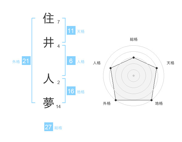 住井 人夢さんの総格は27画の3点!