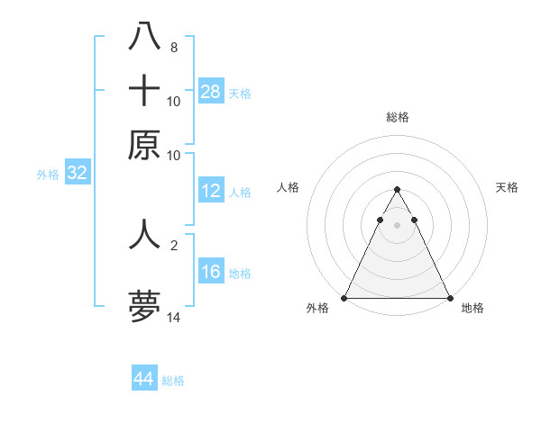 八十原 人夢さんを姓名の画数から五運を鑑定