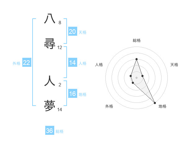 八尋 人夢さんの天格は20画の1点!