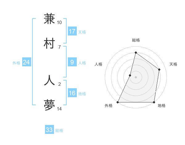 兼村 人夢さんの外格は24画の5点!