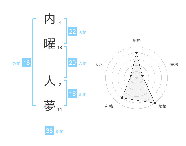 内曜 人夢さんの総格は38画の4点!