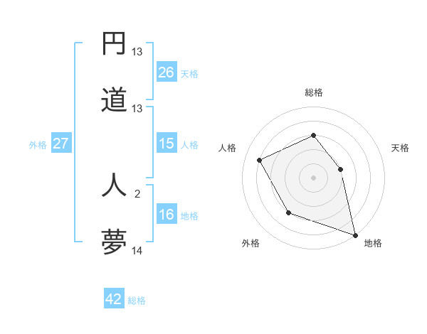 円道 人夢さんの総格は42画の3点!