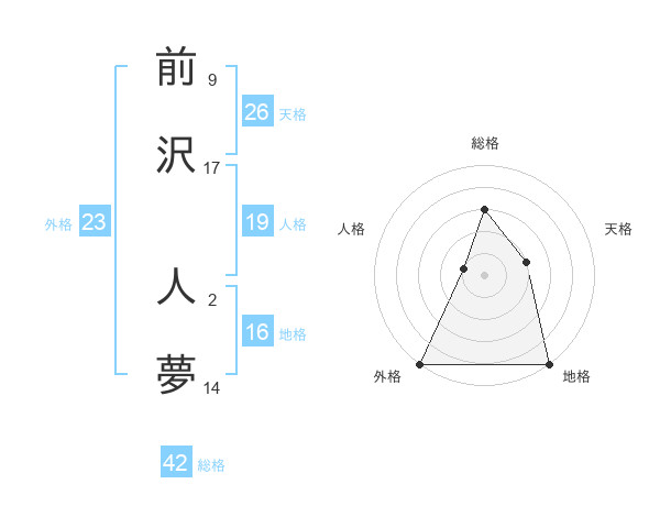 前沢 人夢さんを姓名の画数から五運を鑑定