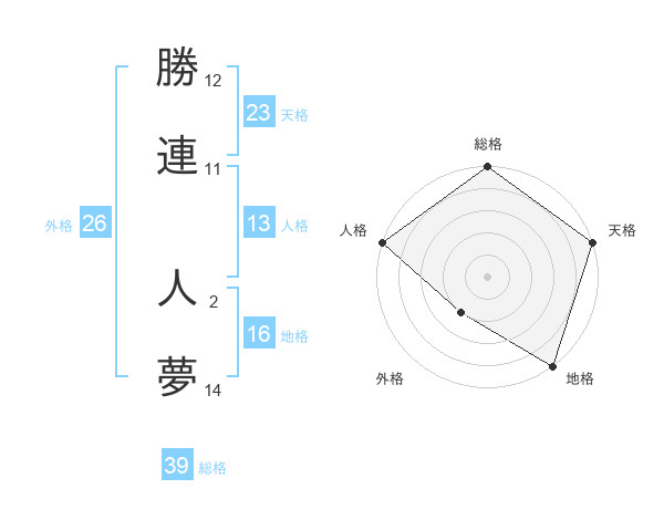 勝連 人夢さんを姓名の画数から五運を鑑定
