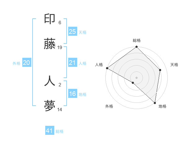 印藤 人夢さんを姓名の画数から五運を鑑定