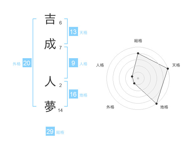 吉成 人夢さんの総格は29画の4点!