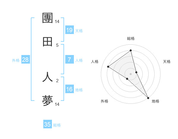 團田 人夢さんの総格は35画の4点!