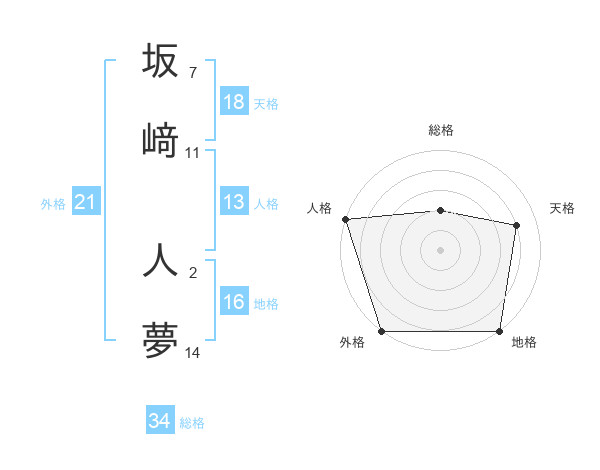 坂﨑 人夢さんを姓名の画数から五運を鑑定