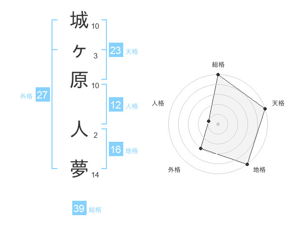 城ヶ原 人夢さんを姓名の画数から五運を鑑定