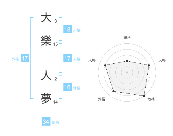 大樂 人夢さんの外格は17画の4点!