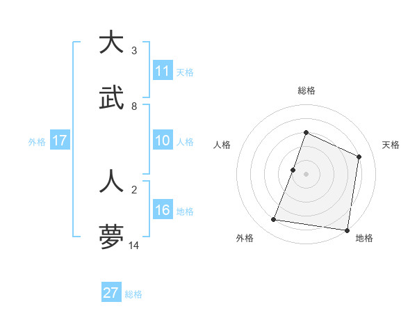 大武 人夢さんの総格は27画の3点!