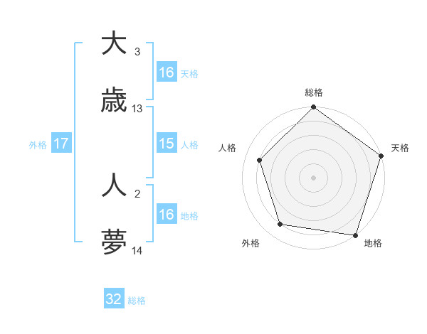 大歳 人夢さんを姓名の画数から五運を鑑定