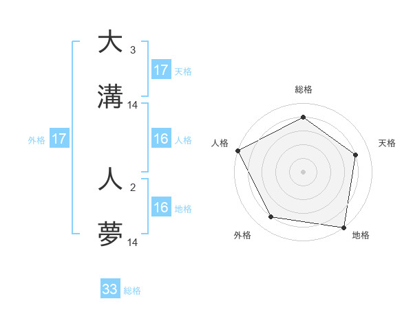 大溝 人夢さんを姓名の画数から五運を鑑定