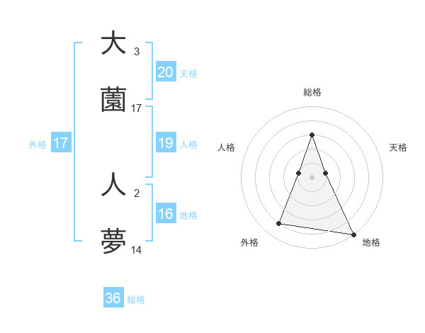 大薗 人夢さんの天格は20画の1点!