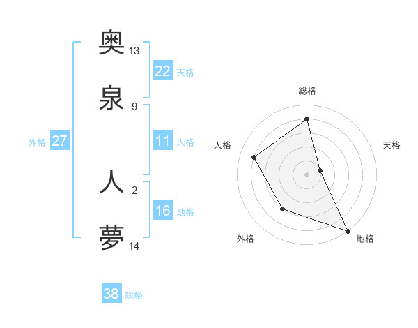 奥泉 人夢さんを姓名の画数から五運を鑑定
