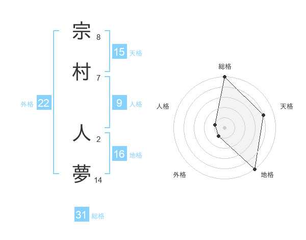 宗村 人夢さんの総格は31画の5点!