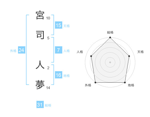 宮司 人夢さんの総格は31画の5点!