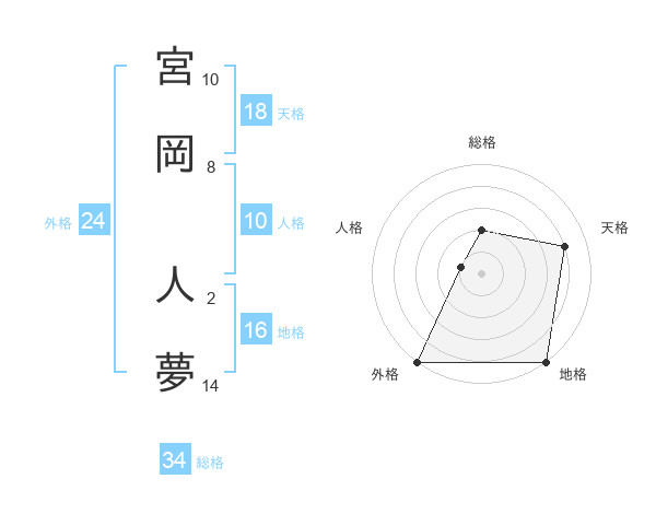 宮岡 人夢さんの天格は18画の4点!