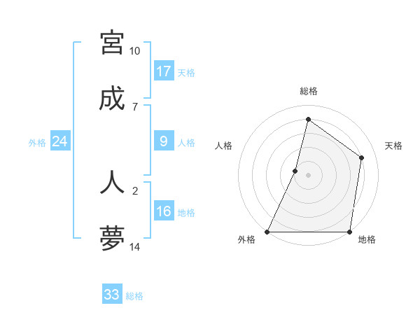 宮成 人夢さんの総格は33画の4点!