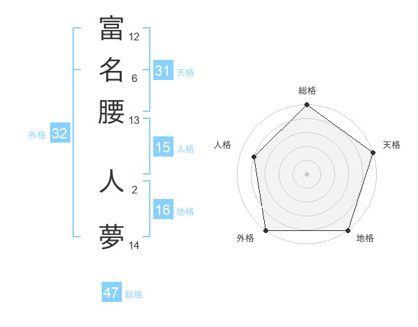 富名腰 人夢さんの天格は31画の5点!