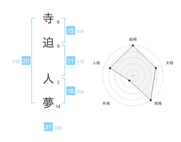 寺迫 人夢さんを姓名の画数から五運を鑑定