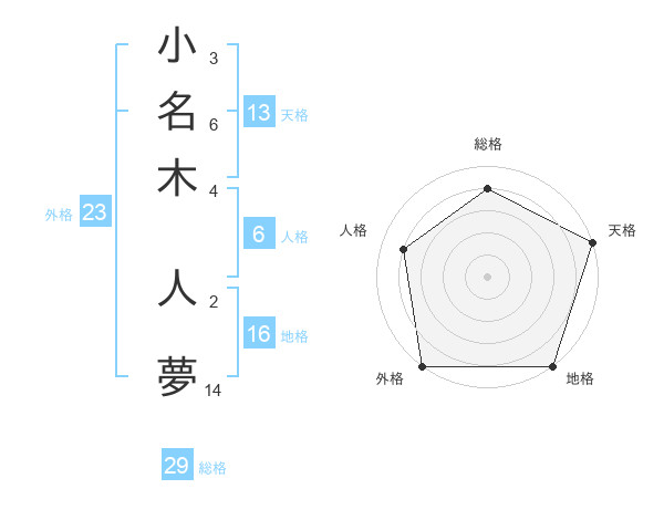 小名木 人夢さんの総格は29画の4点!