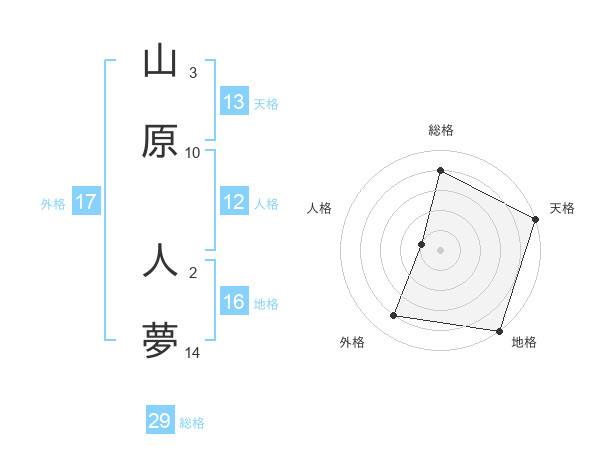 山原 人夢さんの天格は13画の5点!